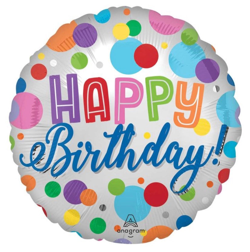 18" Satin Birthday Dots Pkg